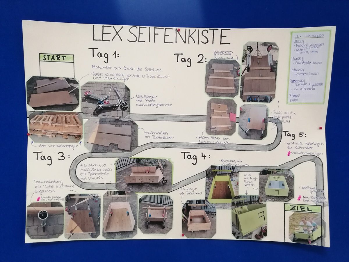 Einen Abschluss fand die LEX schließlich mit der LEXPO am 17. September, einer schulweiten Ausstellung, in der die Produkte und Ergebnisse der einzelnen Projekte präsentiert wurden. An diesem bunten Abend wurde die Vielfalt und der breite Bereich, den die Projekte abdecken, wohl am deutlichsten: Neben Kurzfilmen, kulinarischen Kostproben, Plakatpräsentationen und einem Golfparcours zum Selbstprobieren gab es auch spontane Spritztouren mit einer selbstgebauten Seifenkiste sowie einen Instagram-Kanal, der in ansprechendem Kurzformat Informationsmaterial zu Weimar, Goethe und Schiller präsentierte. Abgerundet wurde der Abend durch einen Kuchen- und Getränkeverkauf des Jahrgangs 12, der die Abiturkasse ordentlich aufgebessert hat – am Ende also nicht nur eine Erfahrung in Sachen Selbstwirksamkeit, sondern auch finanziell ein durchschlagender Erfolg für unsere Schülerinnen und Schüler.